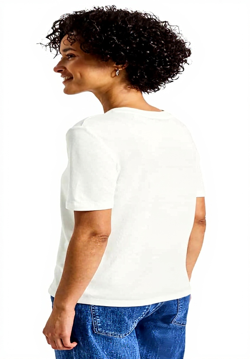 Entworfen für Frauen, die nach einem bequemen und stilvollen Basic-Shirt suchen. Es spricht besonders Personen an, die Wert auf vielseitige Kleidung legen, die sich einfach in bestehende Garderoben integrieren lässt.