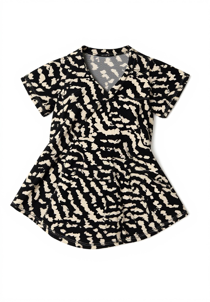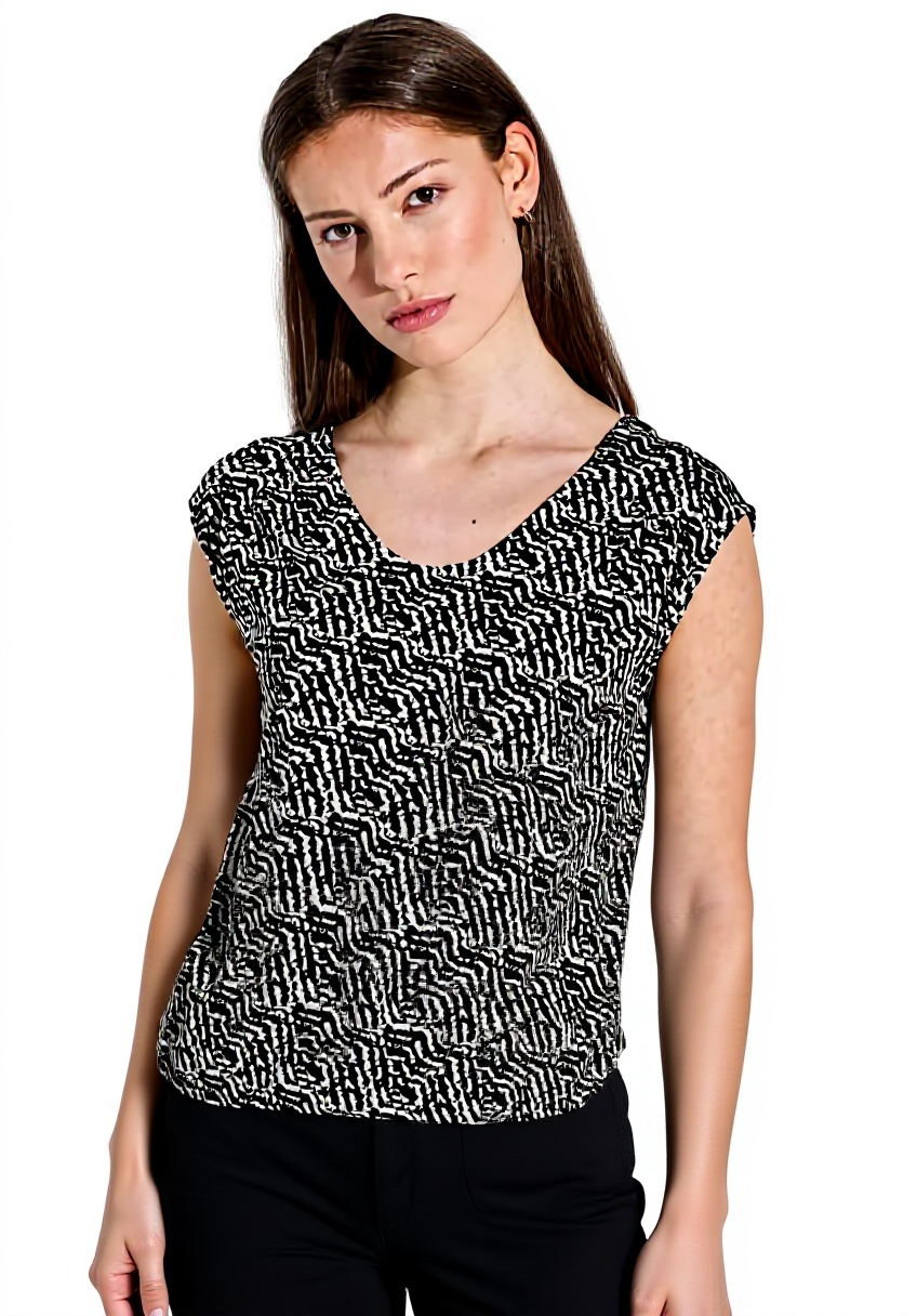 Dieses Shirt richtet sich an modebewusste Frauen, die Wert auf Komfort und Stil legen. Es ist ideal für alle, die eine vielseitige, pflegeleichte Bluse für den täglichen Gebrauch suchen und dabei nicht auf trendige Details wie das grafische Muster verzichten möchten.