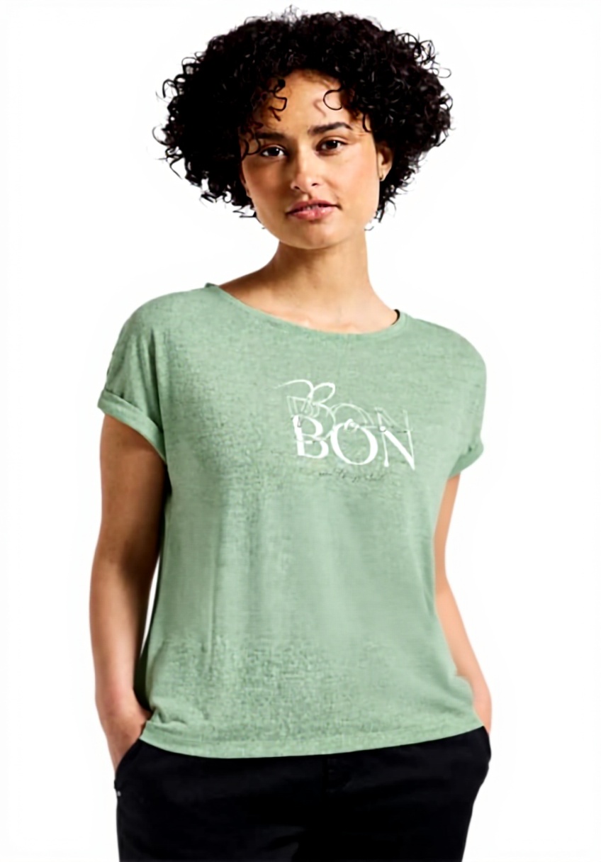Das T-Shirt ist in der Farbe Soft Jade Green erhältlich und in den Größen 34 bis 46 verfügbar. Hergestellt aus weichem Jersey-Material, sorgt es für ein angenehmes Tragegefühl und eine gute Passform. Die Modellnummer A322703 unterstreicht die Qualität von Street One.