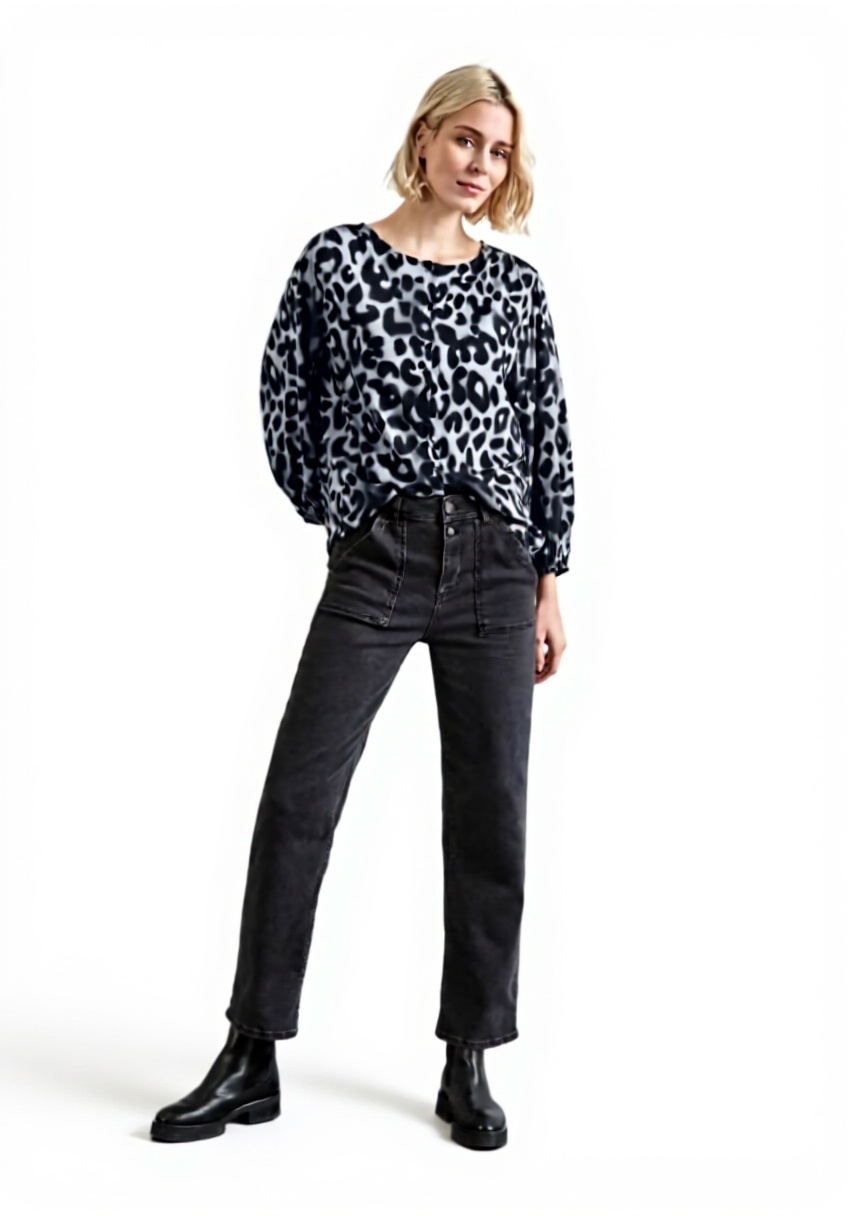 Erhältlich in den Größen 34 bis 46 in der Farbe Echo Grey. Die Bluse besteht aus 100% Viskose, bietet eine normale Passform und wiegt etwa 200 Gramm. Modellnummer A345199, pflegeleicht bei 30°C maschinenwaschbar.