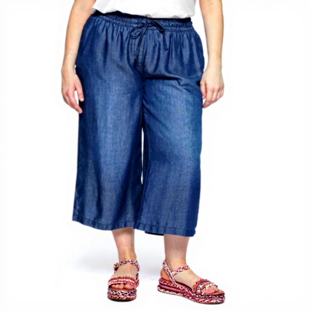 Die Hose ist in der Größe 42 (entspricht einer normalen Größe 46) erhältlich und eignet sich speziell für Damen mit großen Größen. Das Material Lyocell ist bekannt für seine glatte, seidige Oberfläche und seine umweltfreundliche Herstellung. Das Modell verfügt über einen regulären Schnitt mit cropped Länge für einen zeitgemäßen Look.