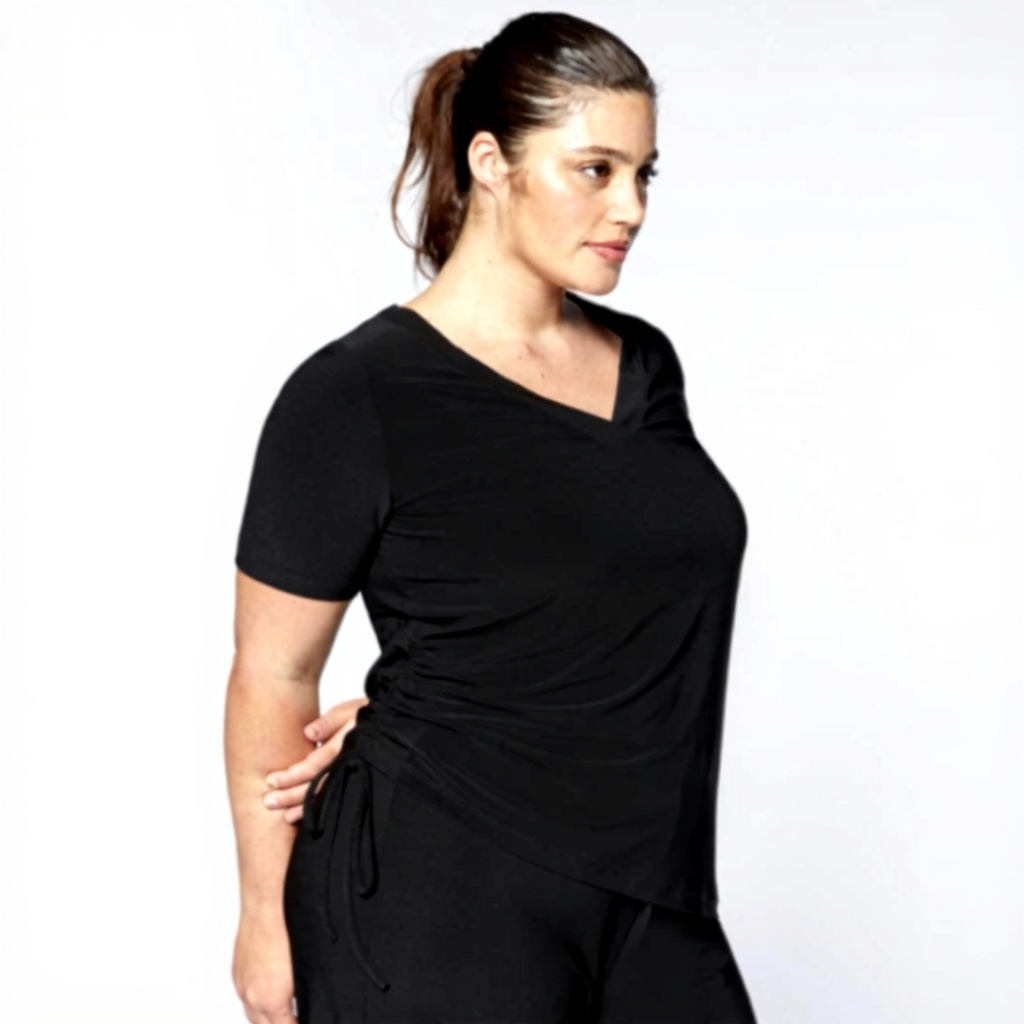 Der Tunnelzug an der rechten Seite ermöglicht es, das T-Shirt nach Belieben zu raffen und die Länge individuell anzupassen. Dies sorgt für eine personalisierte Passform und ein einzigartiges Styling.