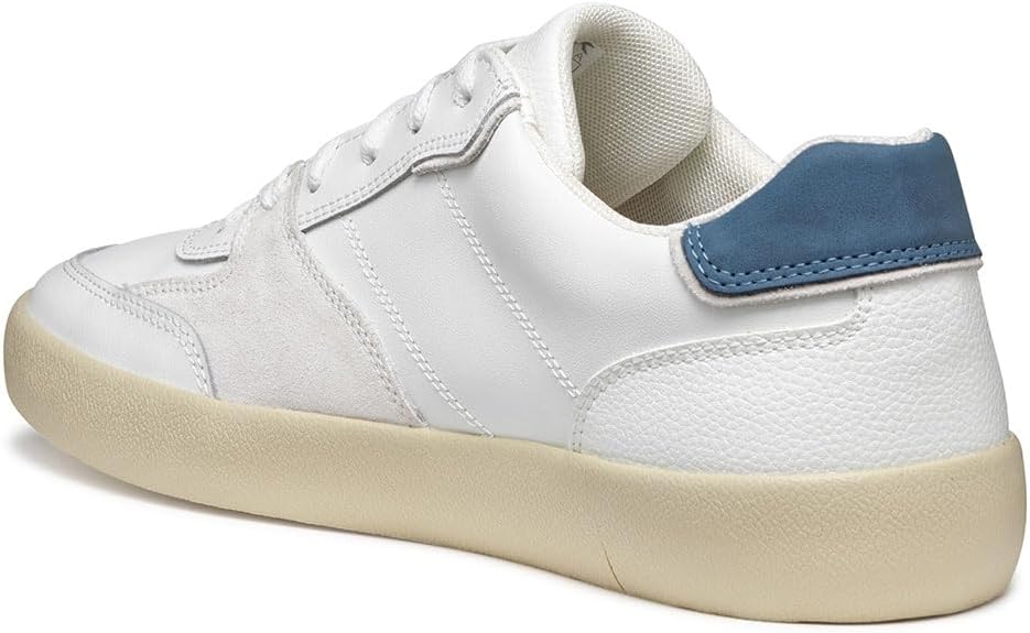 Der Geox Herren U Affile B Sneaker besticht durch sein modernes, schlichtes Design und hochwertige Materialien. Gefertigt aus gedecktem Leder und Material in Lederoptik, bietet er eine optimale Balance zwischen Stil und Funktionalität. Die Farbe Weiß mit dezentem Fersenbesatz in Avioblau verleiht ihm eine essentielle, vielseitige Optik, die zu verschiedenen Outfits passt.