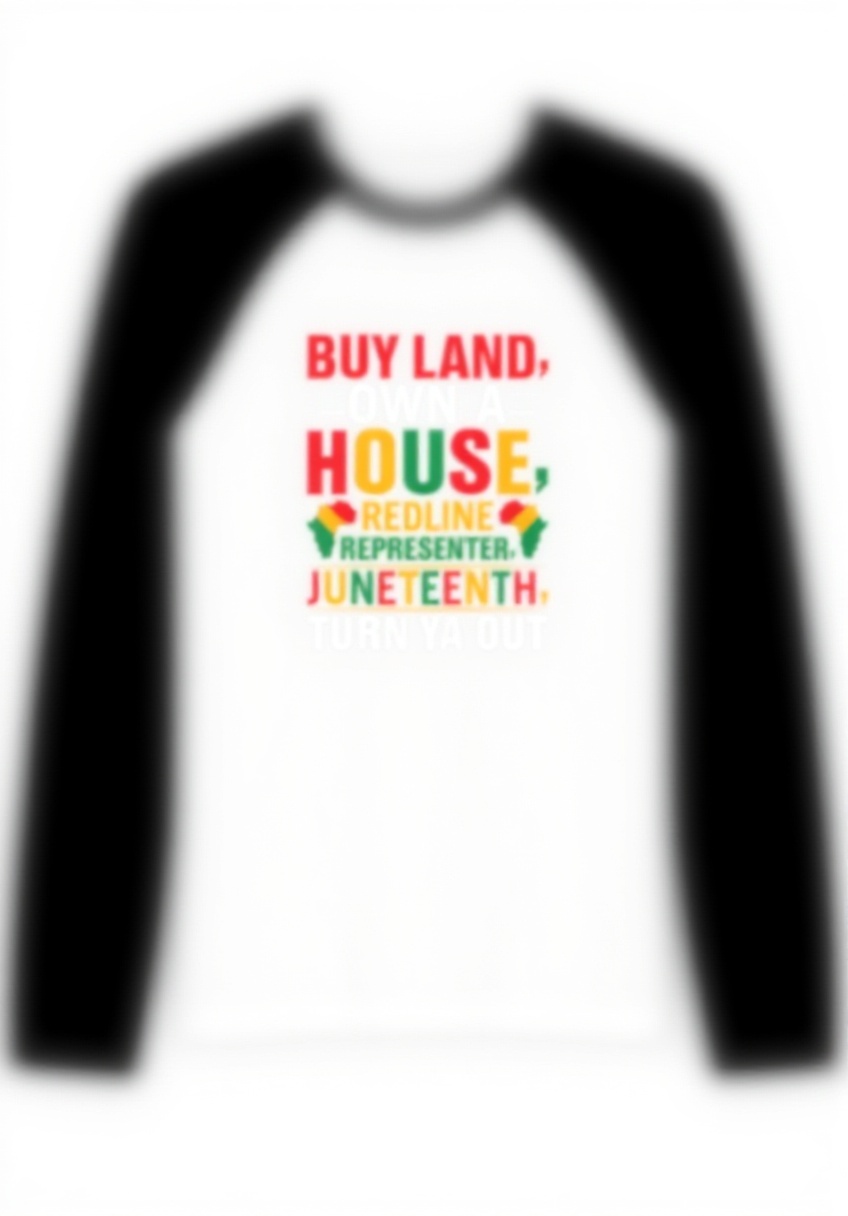 Dieses T-Shirt zeichnet sich durch sein Raglan-Design mit doppelt genähten Ärmeln und Saum aus, was für zusätzliche Haltbarkeit sorgt. Es ist leicht und hat einen klassischen Schnitt, der sich ideal für verschiedene Körperformen eignet. Hergestellt von Buy Land Own House Redline Representer Juneteenth, unterstützt es mit seinem Design besondere Anlässe.