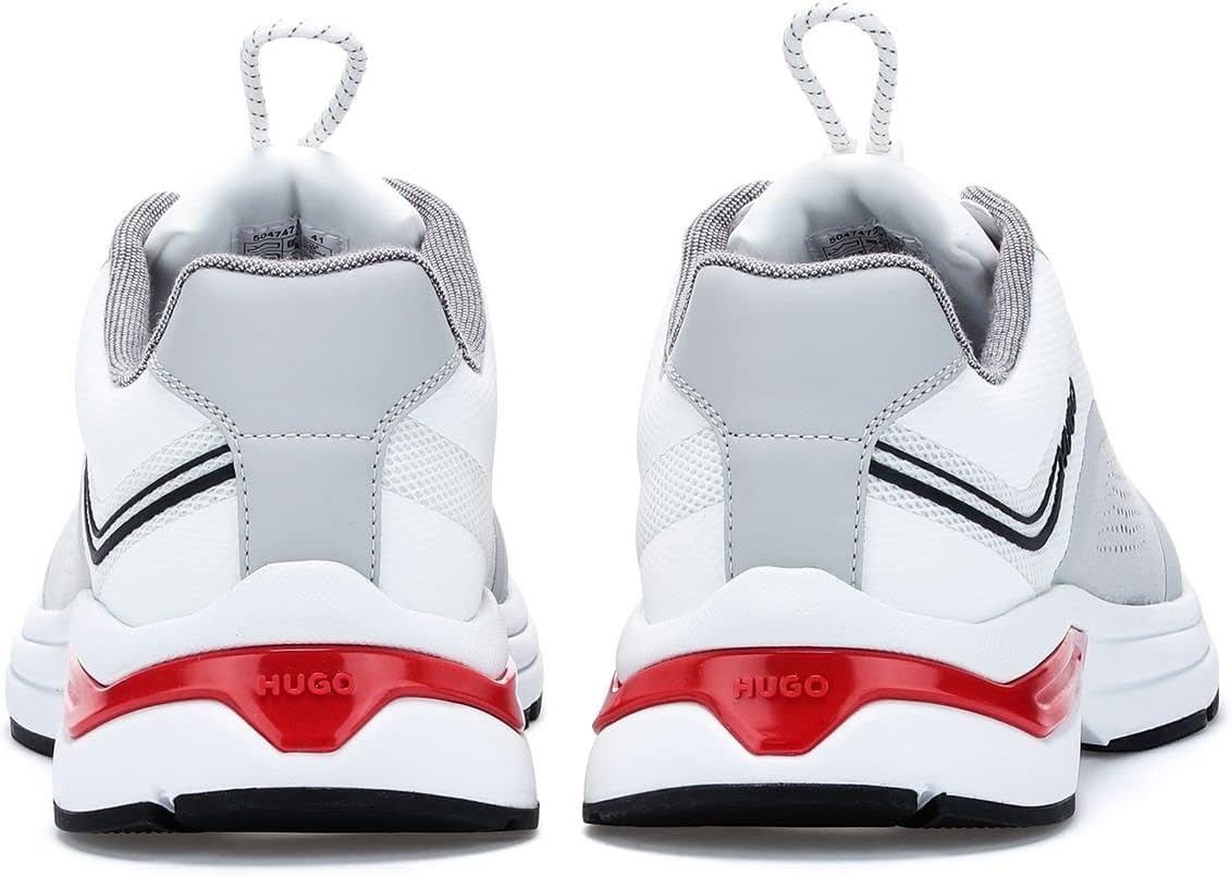 Die HUGO Herren Axel Runn Sneaker überzeugen mit einem zeitlosen Design und hochwertiger Verarbeitung. Aus robusten Materialien gefertigt, bieten sie einen flachen Absatz und einen schmalen Schnitt für optimale Passform und Komfort im Alltag.