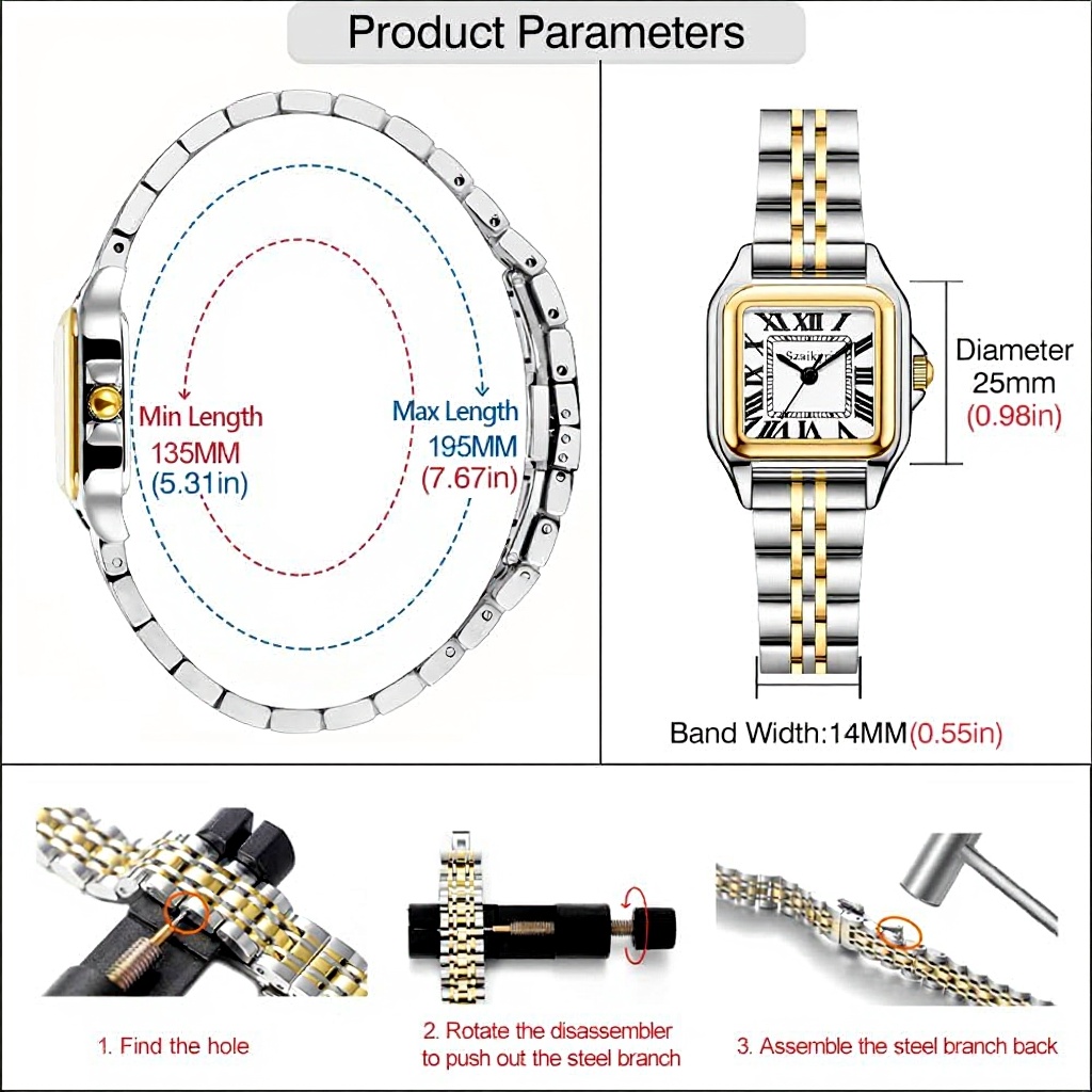 Diese Armbanduhr richtet sich an modebewusste Frauen, die Wert auf klassisches Design und Funktionalität legen. Sie ist besonders geeignet für Berufstätige, Studentinnen und alle, die eine elegante Uhr für den täglichen Gebrauch suchen. Das variable Armband ermöglicht eine individuelle Anpassung an verschiedene Handgelenksgrößen.