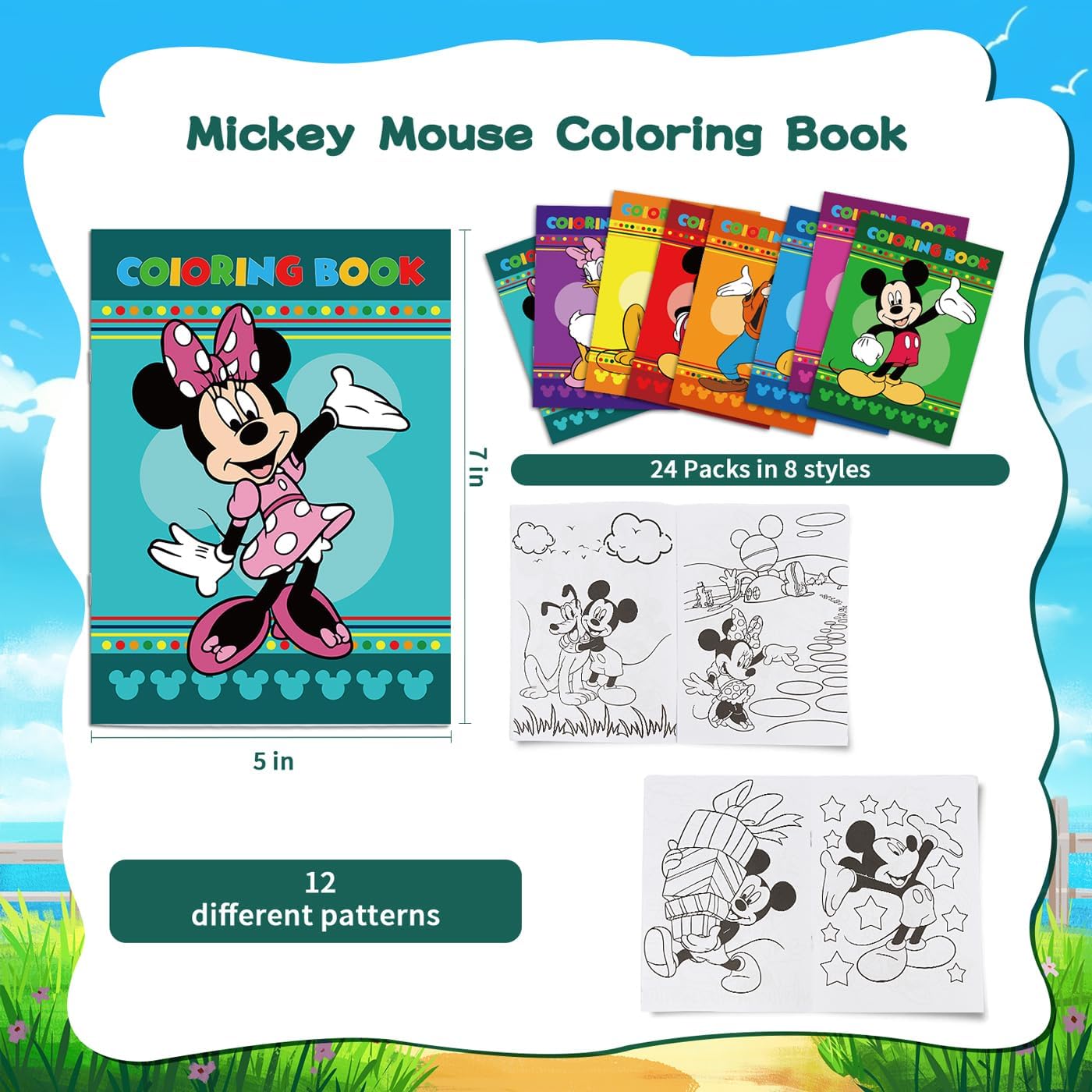 Mickey Birthday Party Supplies, 24Pcs Mouse Coloring Books for Minnie Birthday Party Gifts, Goodie Bag Stuffers, Classroom Rewards, 8 Styles