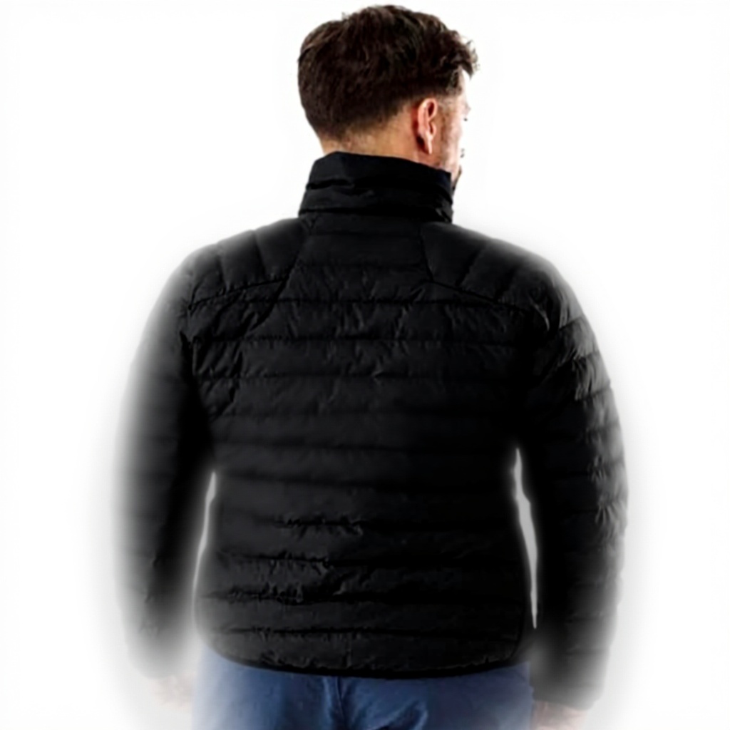 Die Jacke ist in den Größen S, M, L und XL erhältlich und in den Farben Schwarz, Blau und DORITE lieferbar. Das Material umfasst eine 100 % recycelte Synthetik-Füllung REPREVE und Stretchgewebe an den Abschlüssen. Drei Eingrifftaschen mit Reißverschluss bieten praktischen Stauraum.