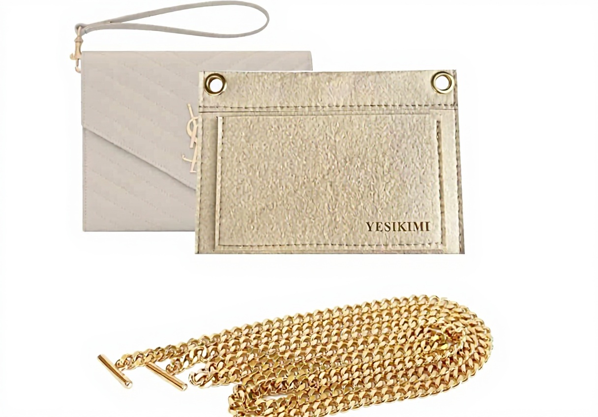 Dieser Umbausatz von YESIKIMI besteht aus einem langlebigen Filzeinsatz und einem Premium-Kettenriemen, der Ihre Monogramm-Tasche in eine praktische Umhängetasche verwandelt. Die Edelstahl-Löcher mit 1 cm Innendurchmesser gewährleisten eine sichere Verbindung, während die feine Handwerkskunst für einen eleganten Look sorgt.