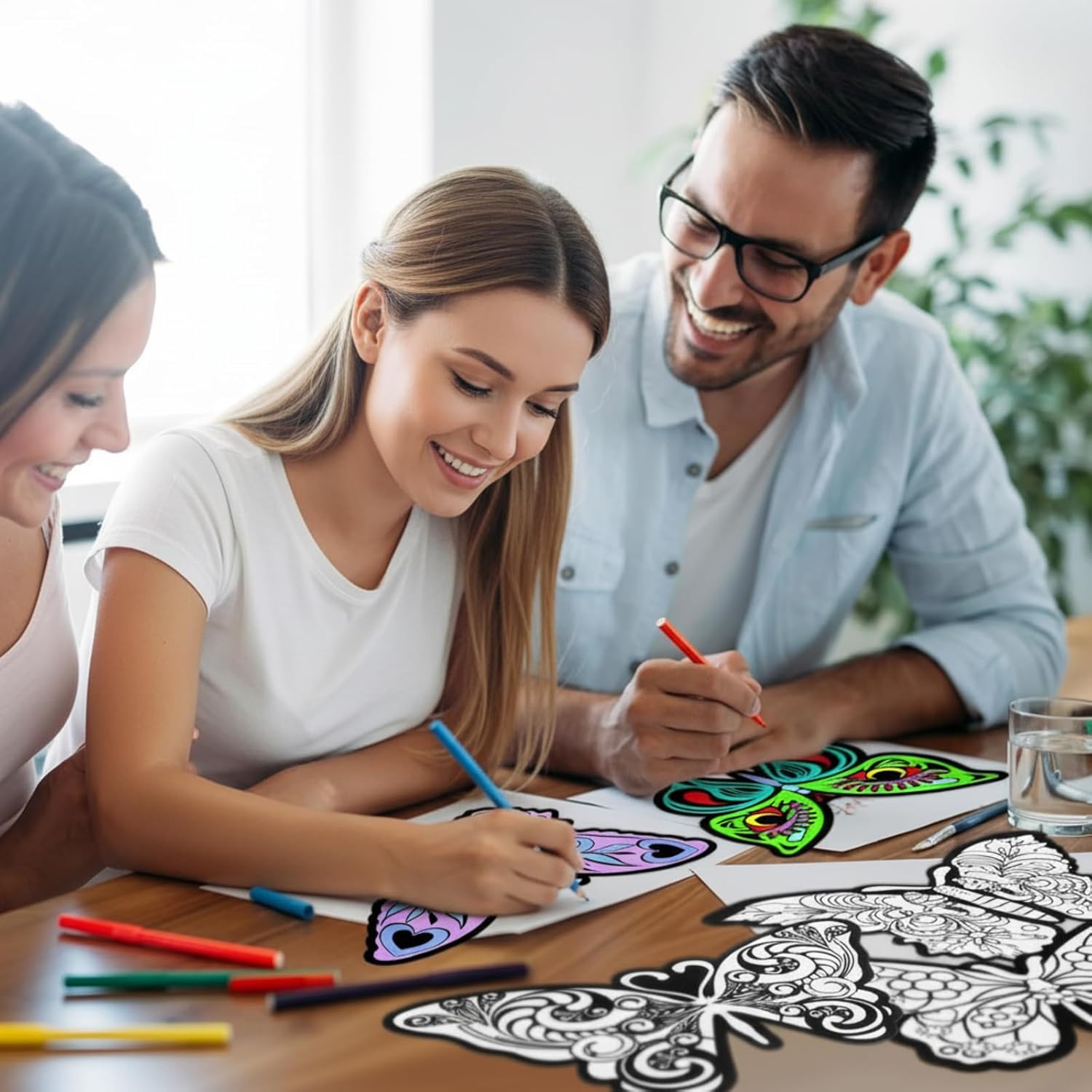 Motipuns 24 Pcs Butterflies Velvet Coloring Fuzzy Color Your Own Velvet Butterflies DIY Posters for Crafts and Arts Family Craft Project Party Favors and Activities(Classic Style)
