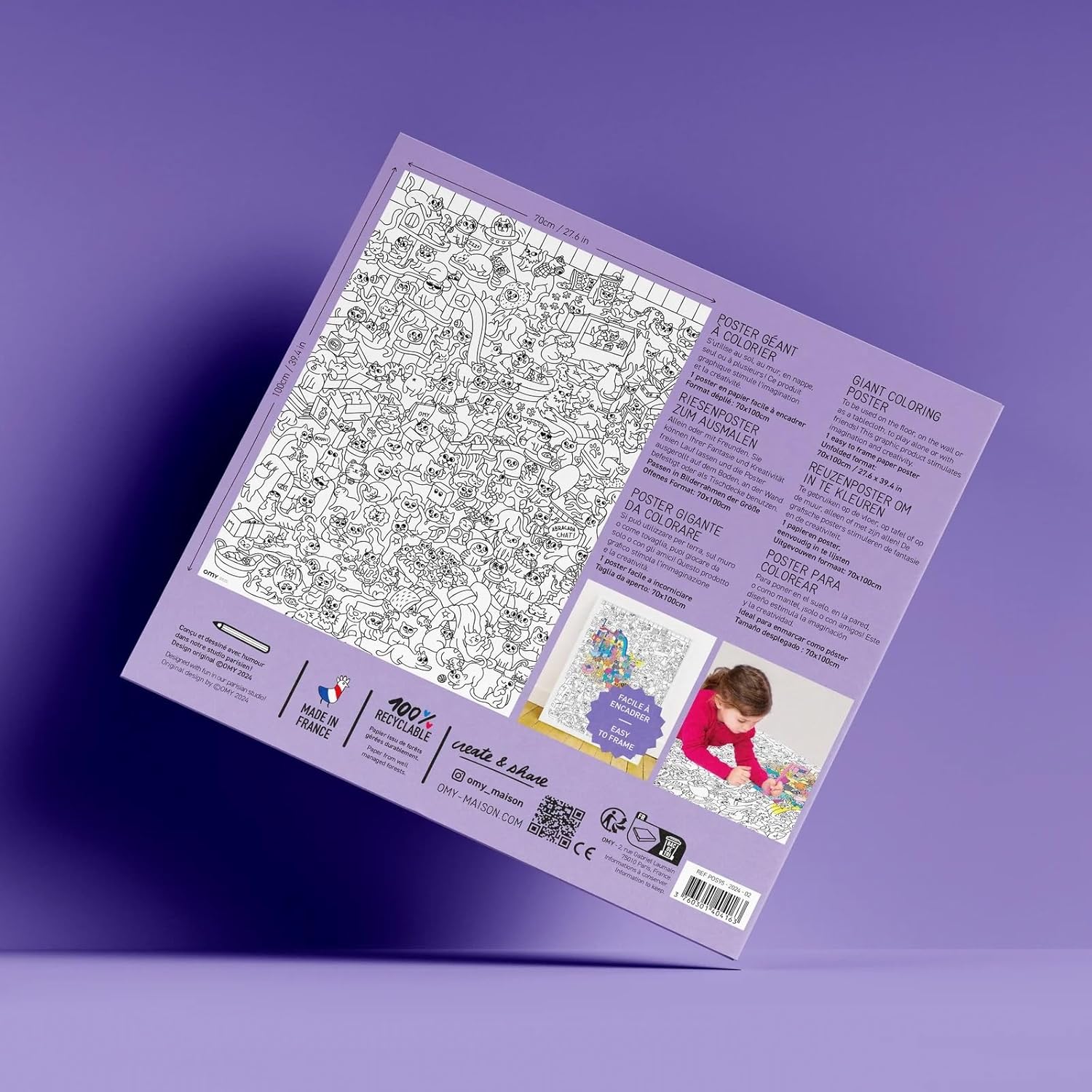 Omy Giant Coloring Poster – Kitty | Fun and Creative Coloring Activity | Extra-Large Poster to Color Alone or with Others | Easy-to-Frame Format | from 3 Years Old