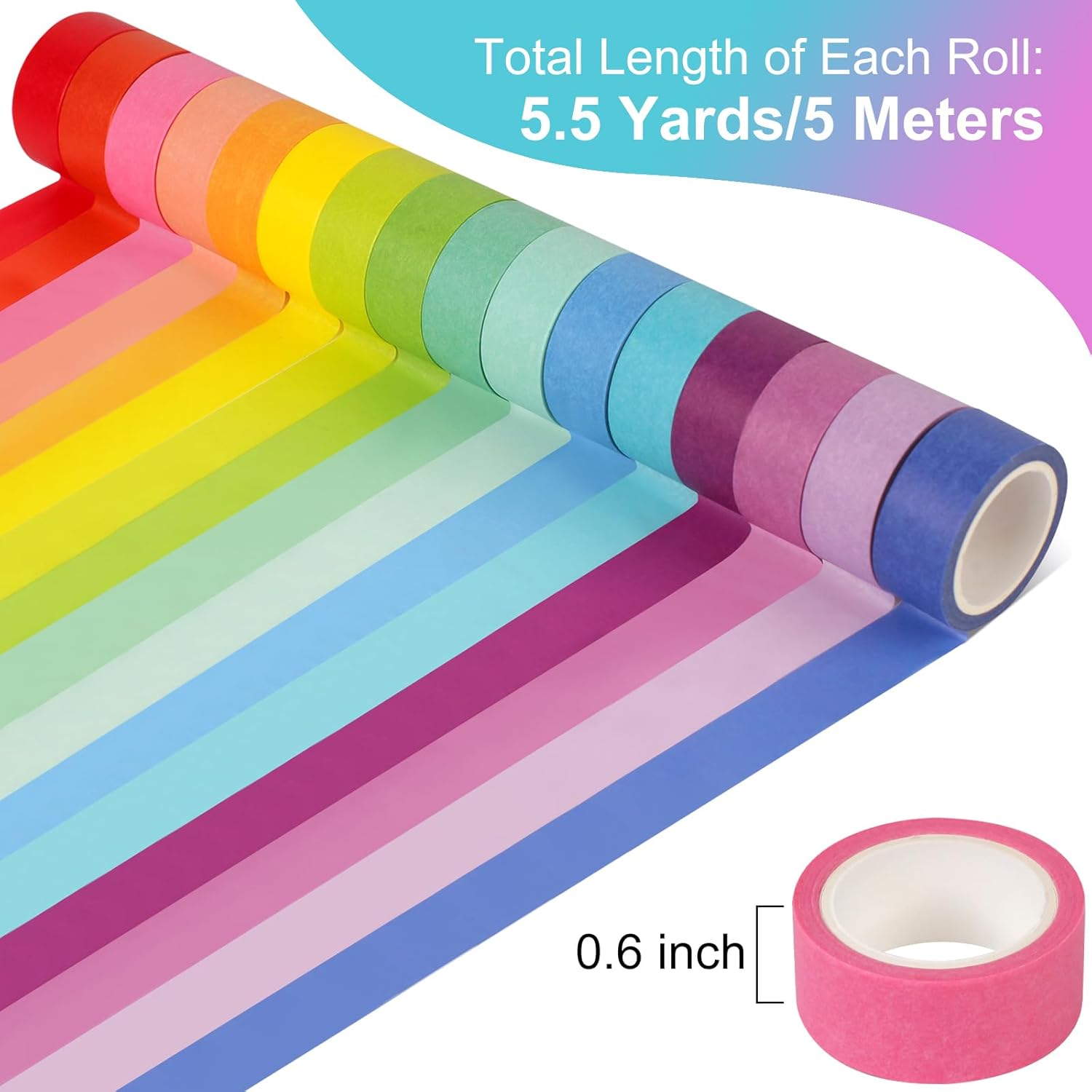 Phinus Washi Tape Set, 16 Pack Decorative Tape, Multicolor, 15mm x 5m, Reusable, Ideal for Gift Wrapping, Journaling, Crafting, Decoration