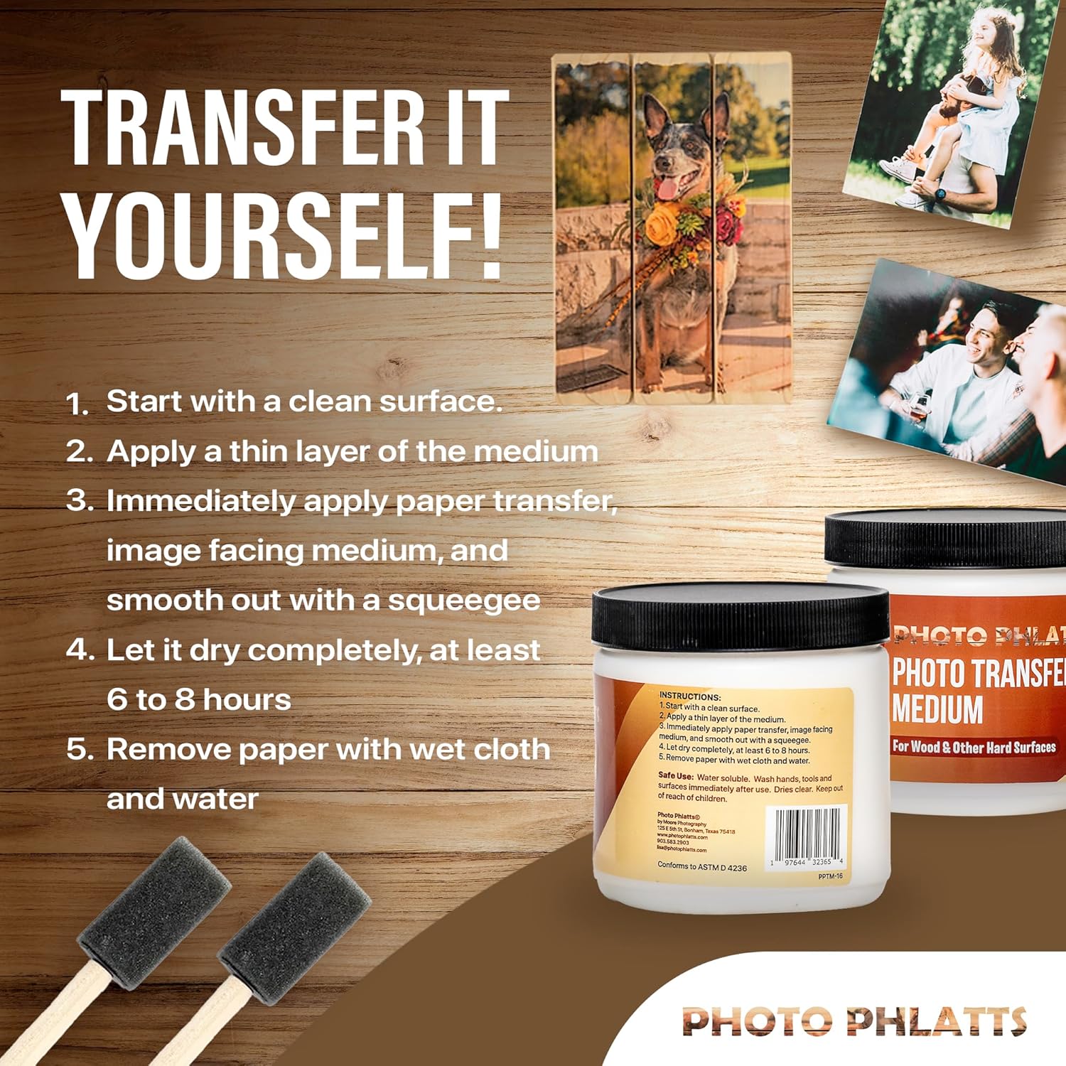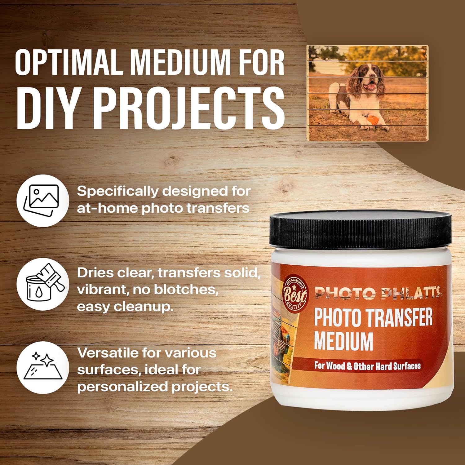 Photo Transfer Medium Gel for Transferring Photos to Wood and Other Hard Surfaces | Premium Clear Drying Solution for Beautiful Results on Your DIY Crafts and Personalized Gifts | 8oz