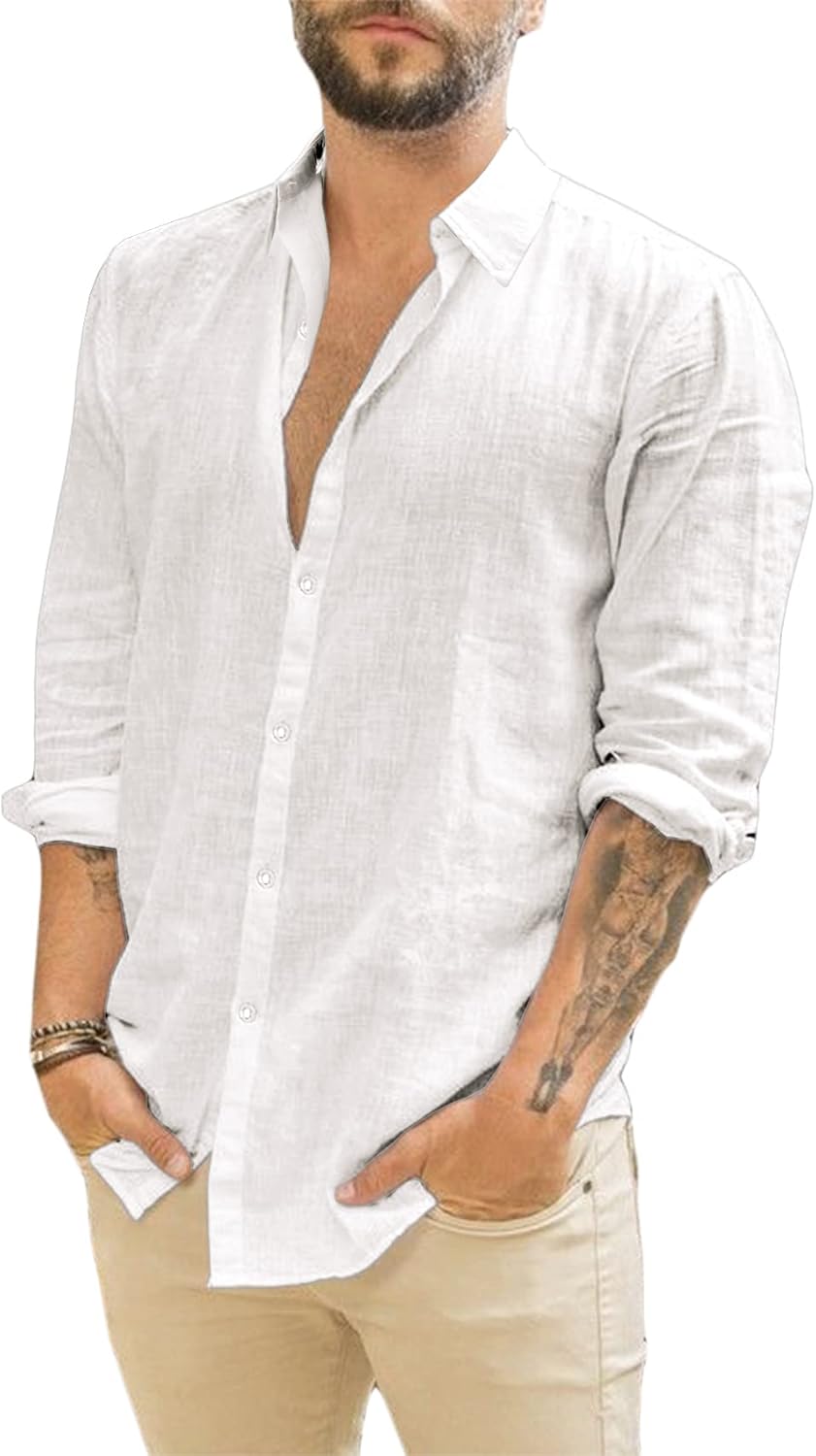 Runcati Herren Langarm Leinenhemd – Elegantes Business- und Freizeithemd
