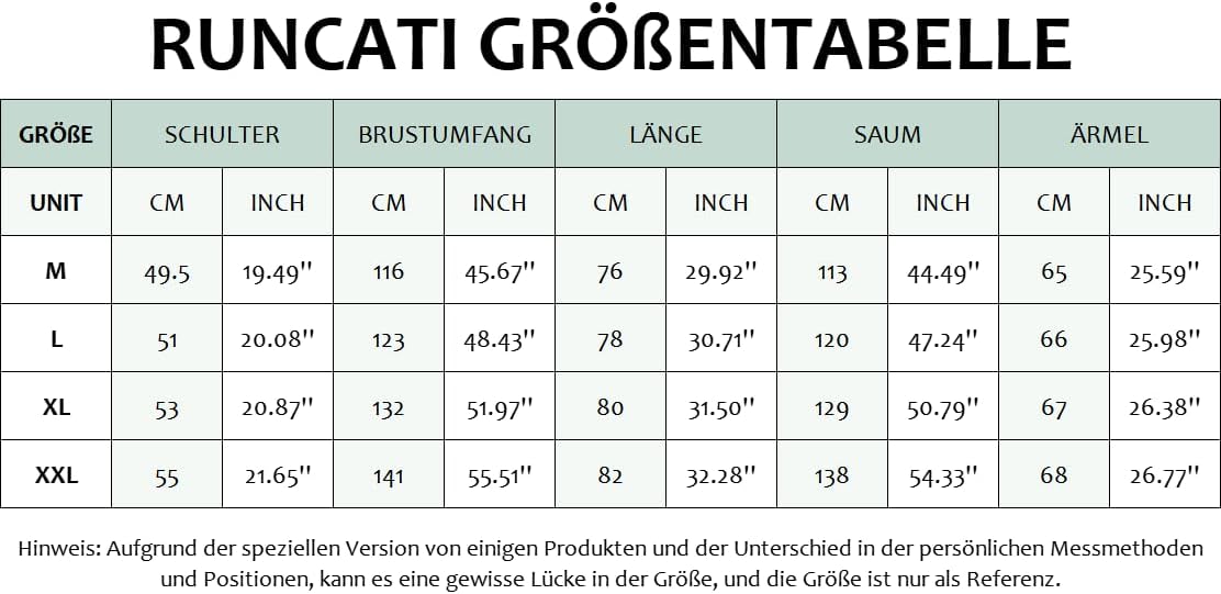 Die Größen können etwas groß ausfallen, daher wird empfohlen, die Messungen im letzten Produktbild zu überprüfen, bevor Sie bestellen, um die passende Größe zu wählen.