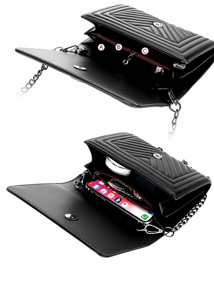 Diese elegante Umhängetasche von Voikukka besticht durch ihr quilted Design aus hochwertigem Kunstleder. Der abnehmbare Kettenschulterriemen ermöglicht vielseitige Tragevarianten, während der zuverlässige Klappverschluss für Sicherheit unterwegs sorgt. Mit mehreren Innentaschen bietet sie organisierten Stauraum für alle Essentials.