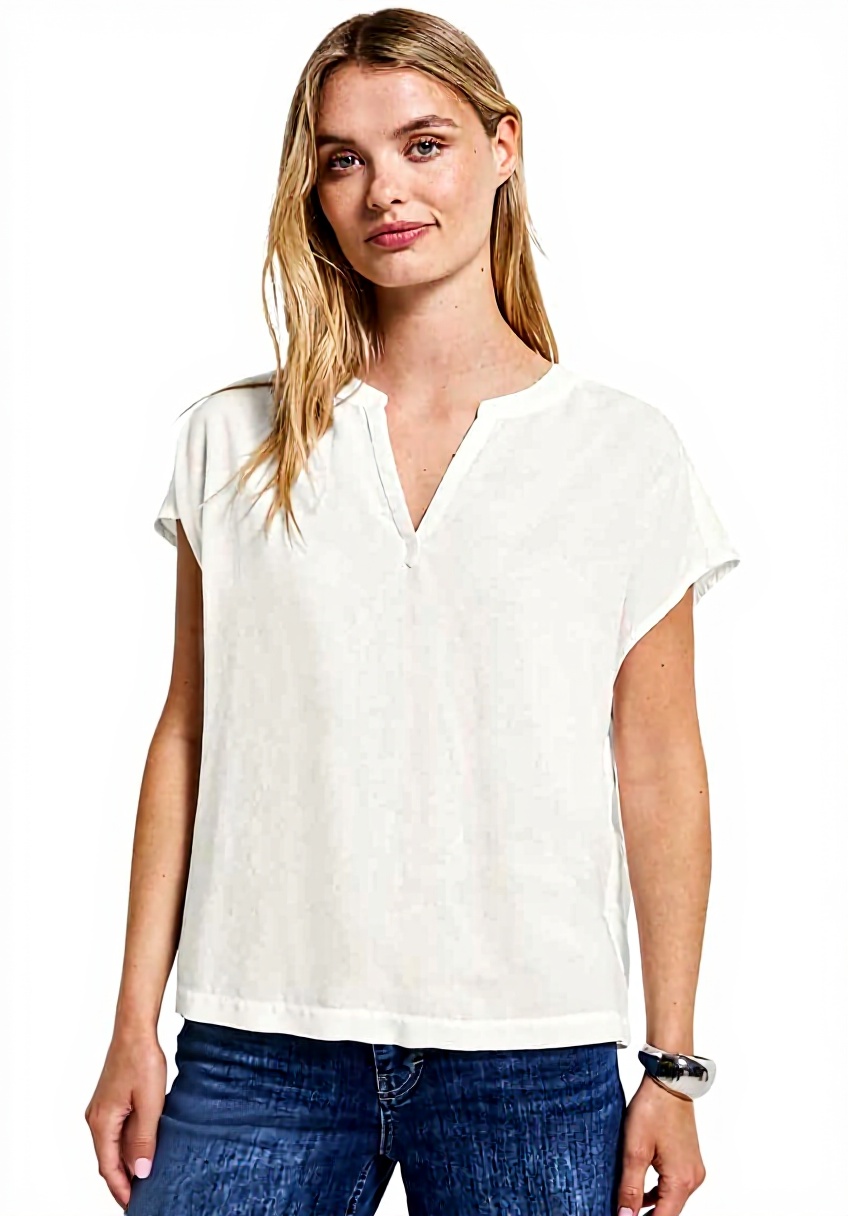 Street One Damen Split Neck Bluse in Unifarbe
