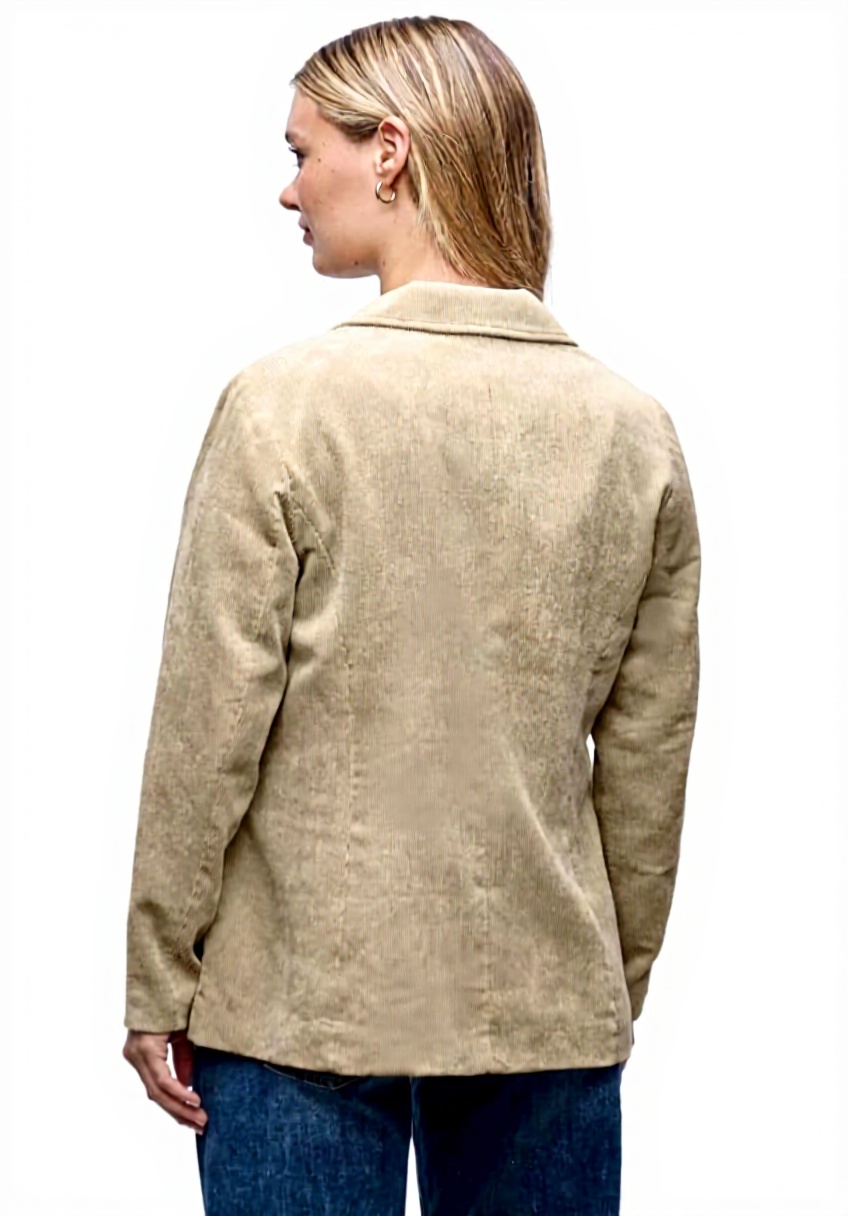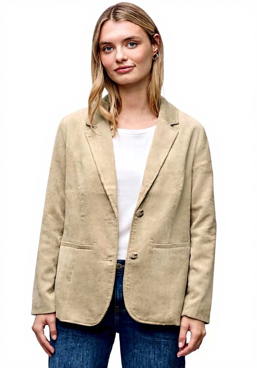 Der Blazer ist in der Farbe Sanded Beige erhältlich und in den Größen 34, 36, 38, 40, 42, 44 und 46 lieferbar. Das Modell A212818 wiegt leicht und bietet eine standardisierte Passform, die sich ideal für verschiedene Körpertypen eignet. Die Materialzusammensetzung aus Cordstoff gewährleistet Atmungsaktivität und Strapazierfähigkeit.
