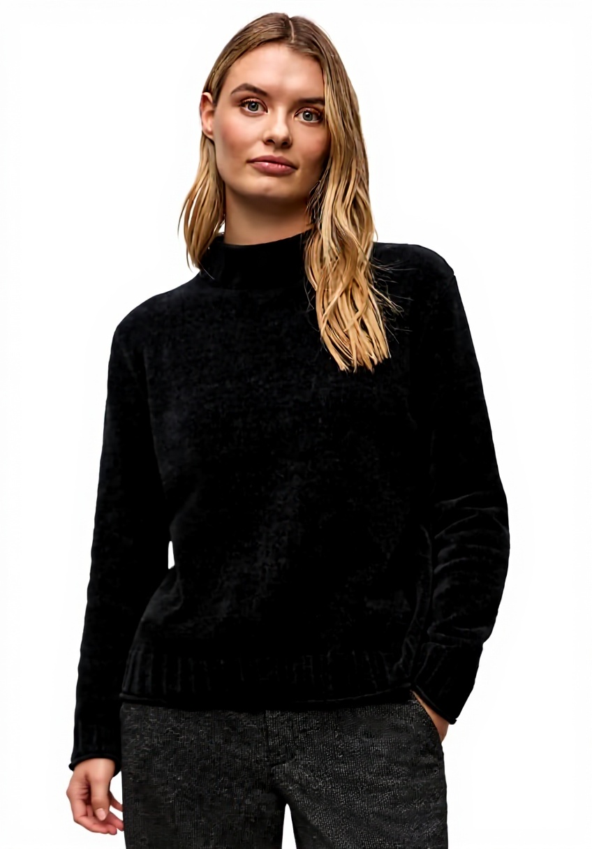 Dieser Strickpullover von Street One besticht durch sein weiches, glänzendes Chenille-Garn, das eine luxuriöse Haptik bietet. Mit einem klassischen Turtleneck-Kragen, gerolltem Saum und langen Ärmeln vereint er Komfort und zeitloses Design für einen vielseitigen Look.