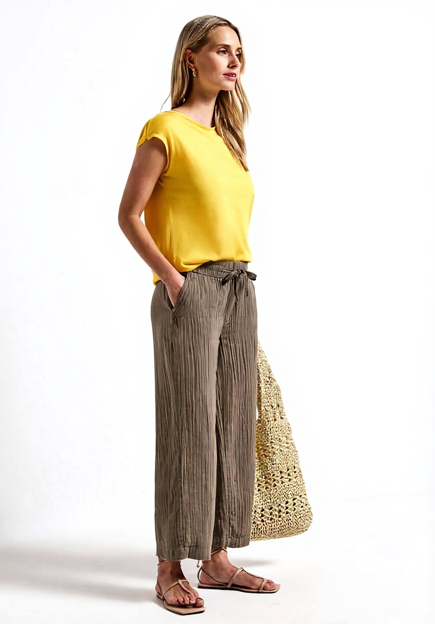 Diese Hose richtet sich an modebewusste Frauen, die Wert auf bequeme, vielseitige Kleidung legen. Ideal für alle, die einen eleganten yet lässigen Look suchen, und besonders geeignet für Personen, die in warmen Klimazonen leben oder aktiv sind.