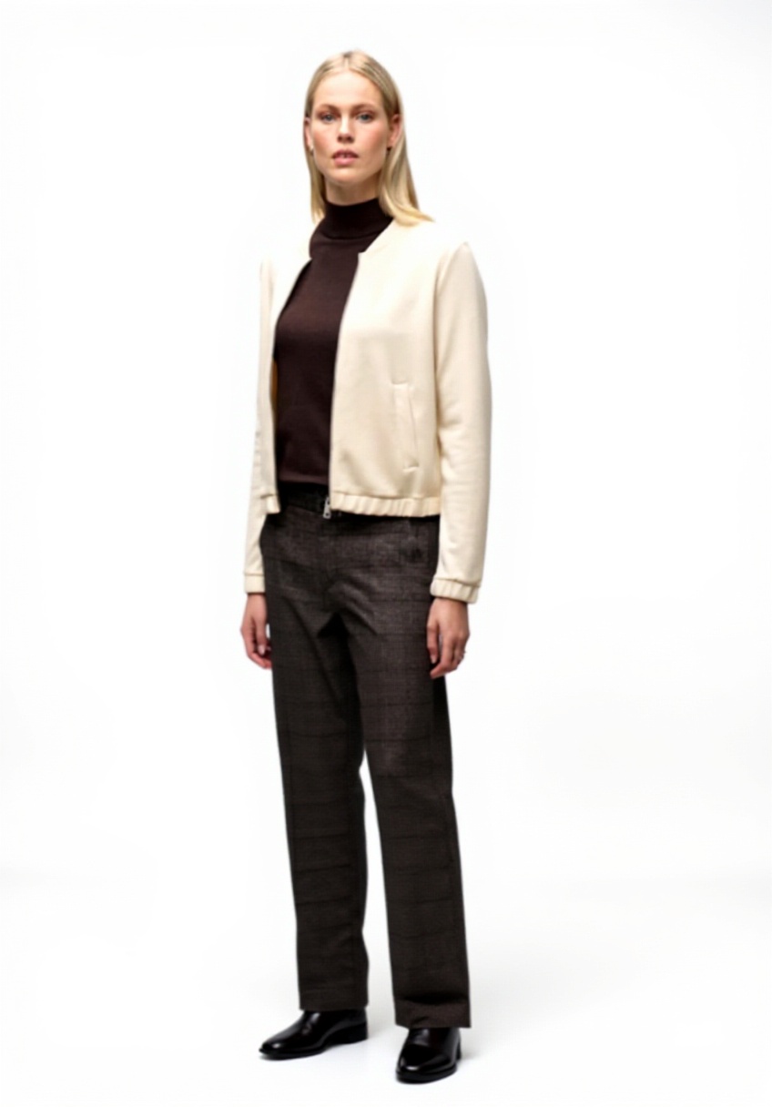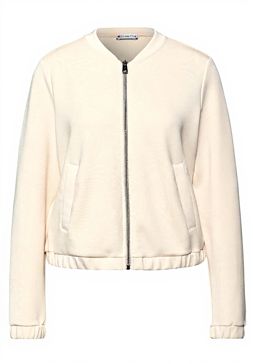 Erhältlich in den Größen 34 bis 46 und den Farben Soft Beige und Schwarz. Die Jacke besteht aus einem Modalmix mit Stretchanteil, der eine optimale Passform gewährleistet. Das elastische Bündchen am Saum sorgt für einen sicheren Sitz.