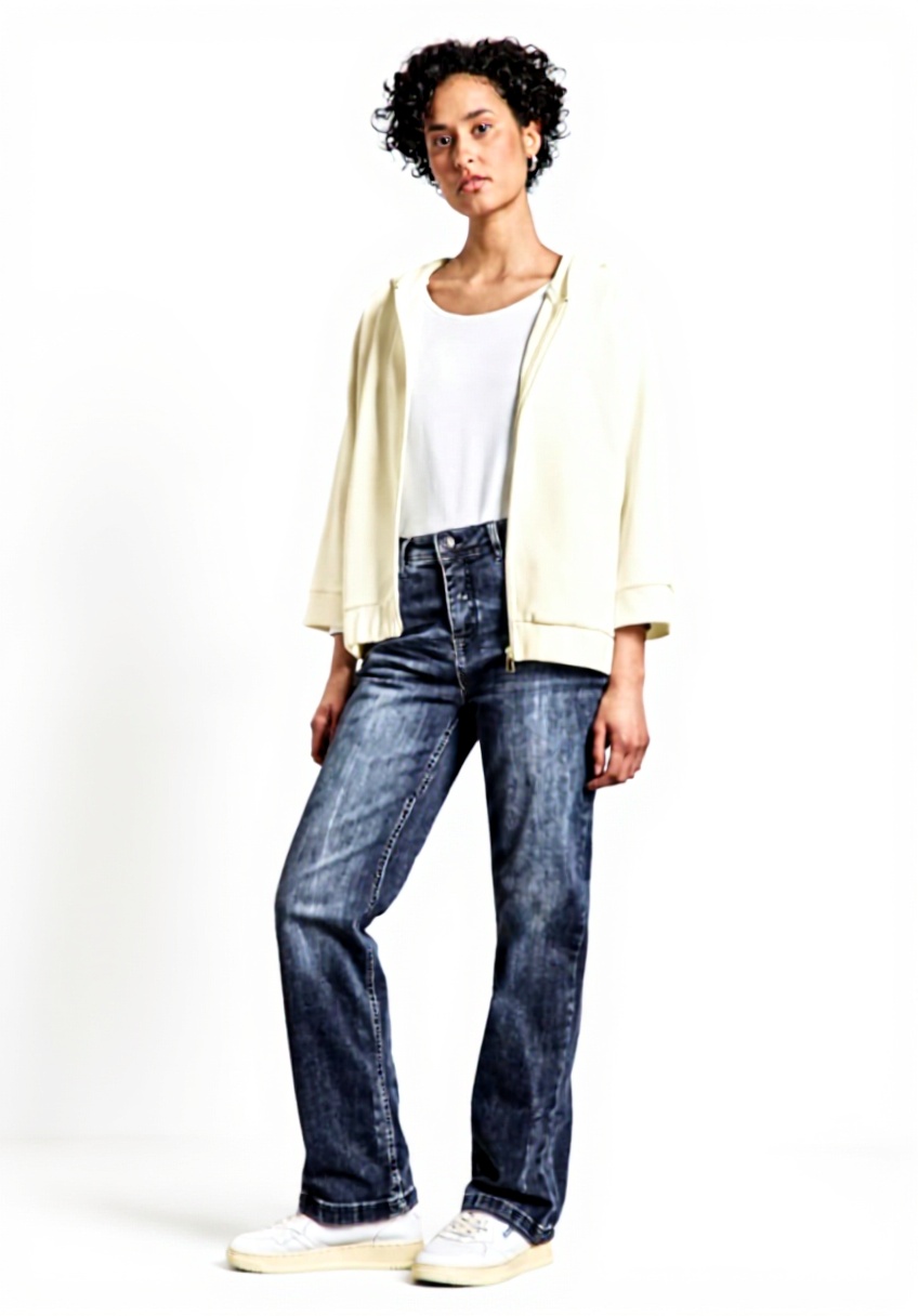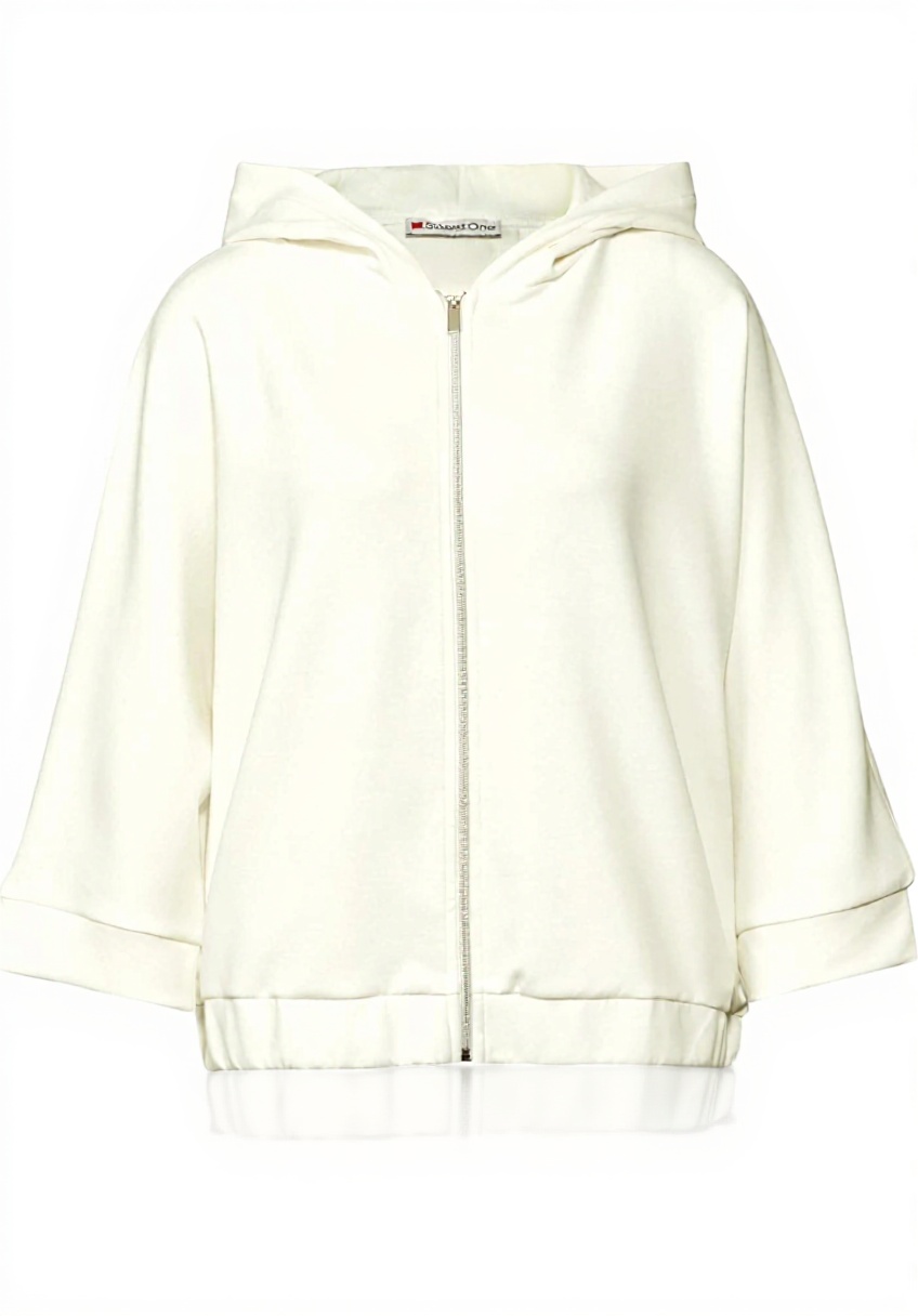 Dieser Kapuzenpullover von Street One überzeugt mit einem seidigen Look und weichem Modalmix, der Dehnbarkeit durch Stretchanteile bietet. Die leichte Sweatjacke verfügt über eine praktische Kapuze und 3/4-Ärmel für einen modernen, lässigen Stil. Der elastische Saum sorgt für eine perfekte Passform und hohen Tragekomfort.