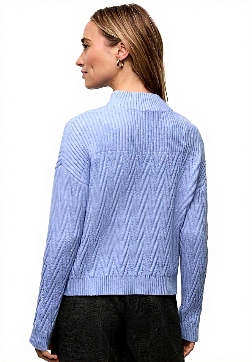 Dieser Damen Pullover von Street One kombiniert einen raffinierten Strukturmix mit einem weichen Viskosematerial für ultimativen Tragekomfort. Das Turtleneck-Design und die langen Ärmel verleihen ihm eine moderne, vielseitige Silhouette, die sich ideal für verschiedene Anlässe eignet.