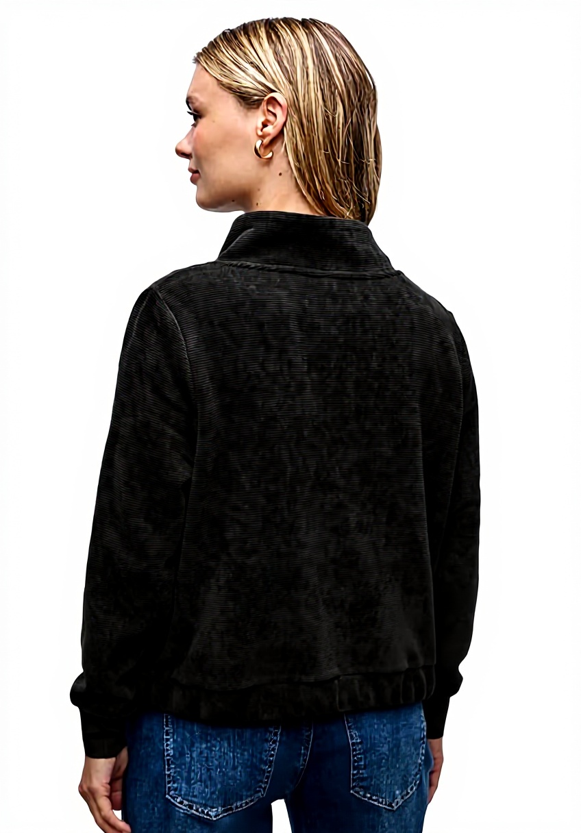 Die Jacke ist aus weicher Jersey-Cord-Qualität gefertigt, die leicht und strapazierfähig ist.