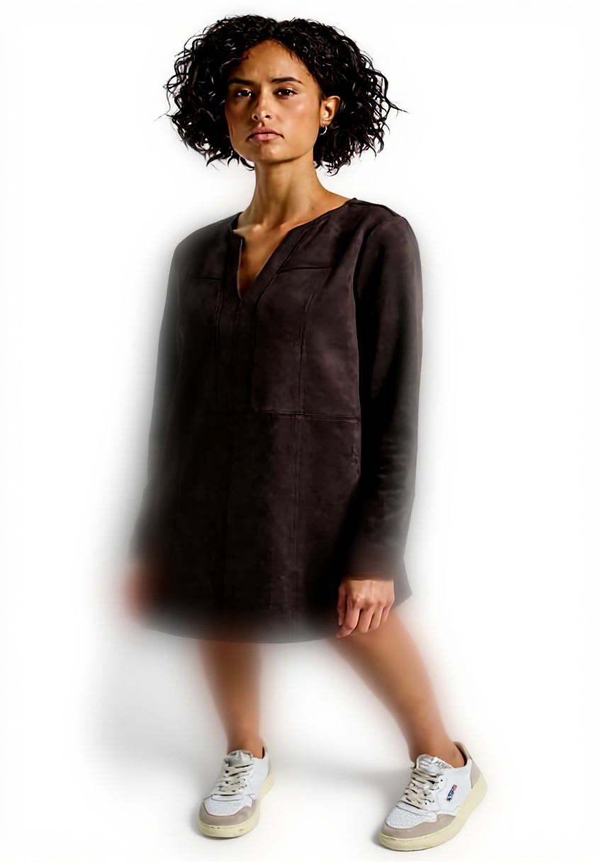 Das Kleid ist in der Farbe Deep Roast Brown erhältlich und in den Größen 34 bis 46 verfügbar, um eine breite Palette von Körperformen zu bedienen. Hergestellt aus hochwertigem Veloursmaterial, zeichnet es sich durch sein angenehmes Tragegefühl und langlebige Verarbeitung aus. Die Modellnummer A144690 unterstreicht die Aufmerksamkeit für Details und Qualität.