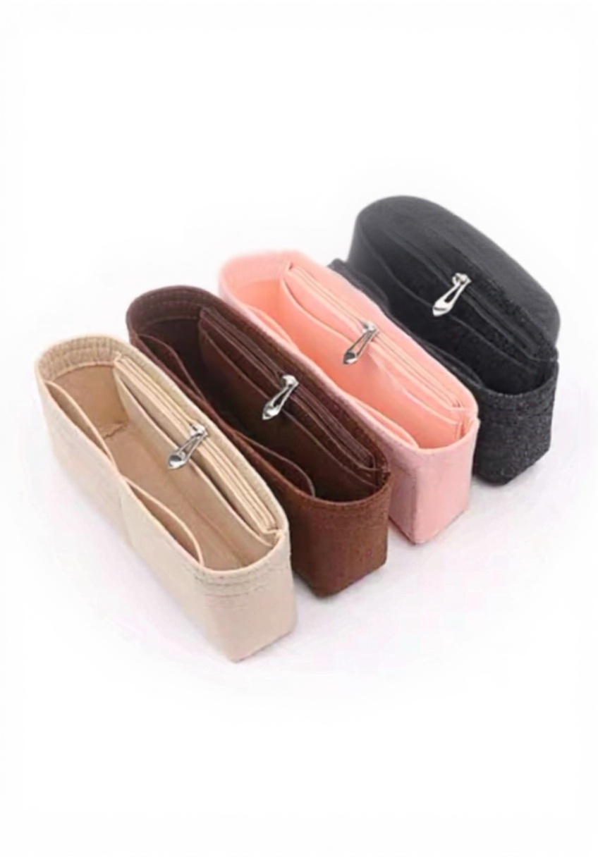 Der Organizer hat die Maße 29 x 17 x 11 cm (L x H x T) und passt perfekt in die Tasche. Hergestellt aus Polyester mit 10 % Wolle, ist er ultraleicht und unbehandelt. Erhältlich in Farben wie Beige, Schwarz, Pink und Braun, mit Optionen für individuelle Anpassungen.