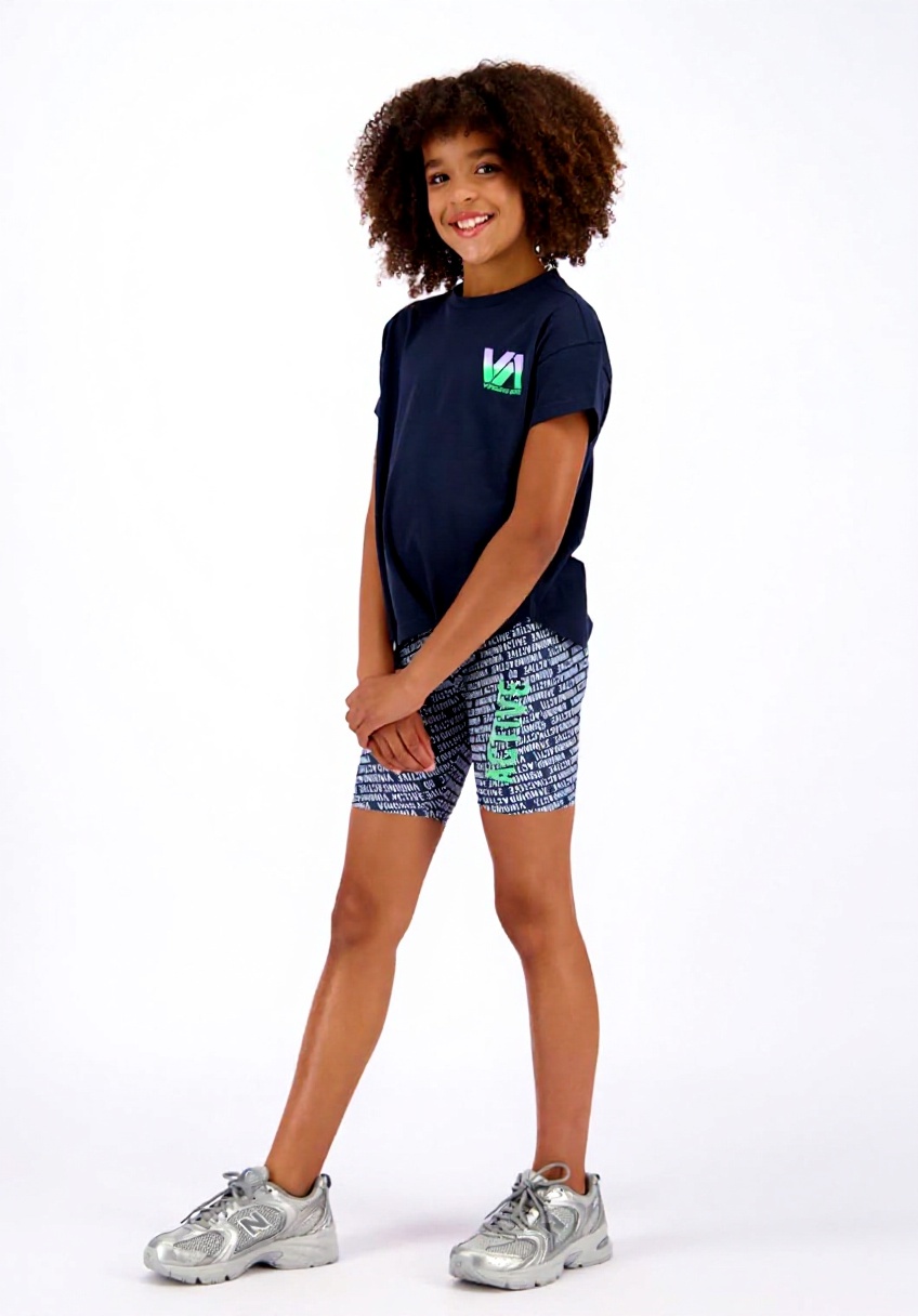 Verfügbar in den Größen 2, 4, 6, 8, 10, 12, 14 und 16 Jahre, mit einer standardmäßigen Passform für Mädchen. Hergestellt aus Baumwollmischung für weiche Hautverträglichkeit und einfache Pflege. Das Modell 1155 Intense Neon Green ist Teil der Vingino-Kollektion und seit November 2023 erhältlich.