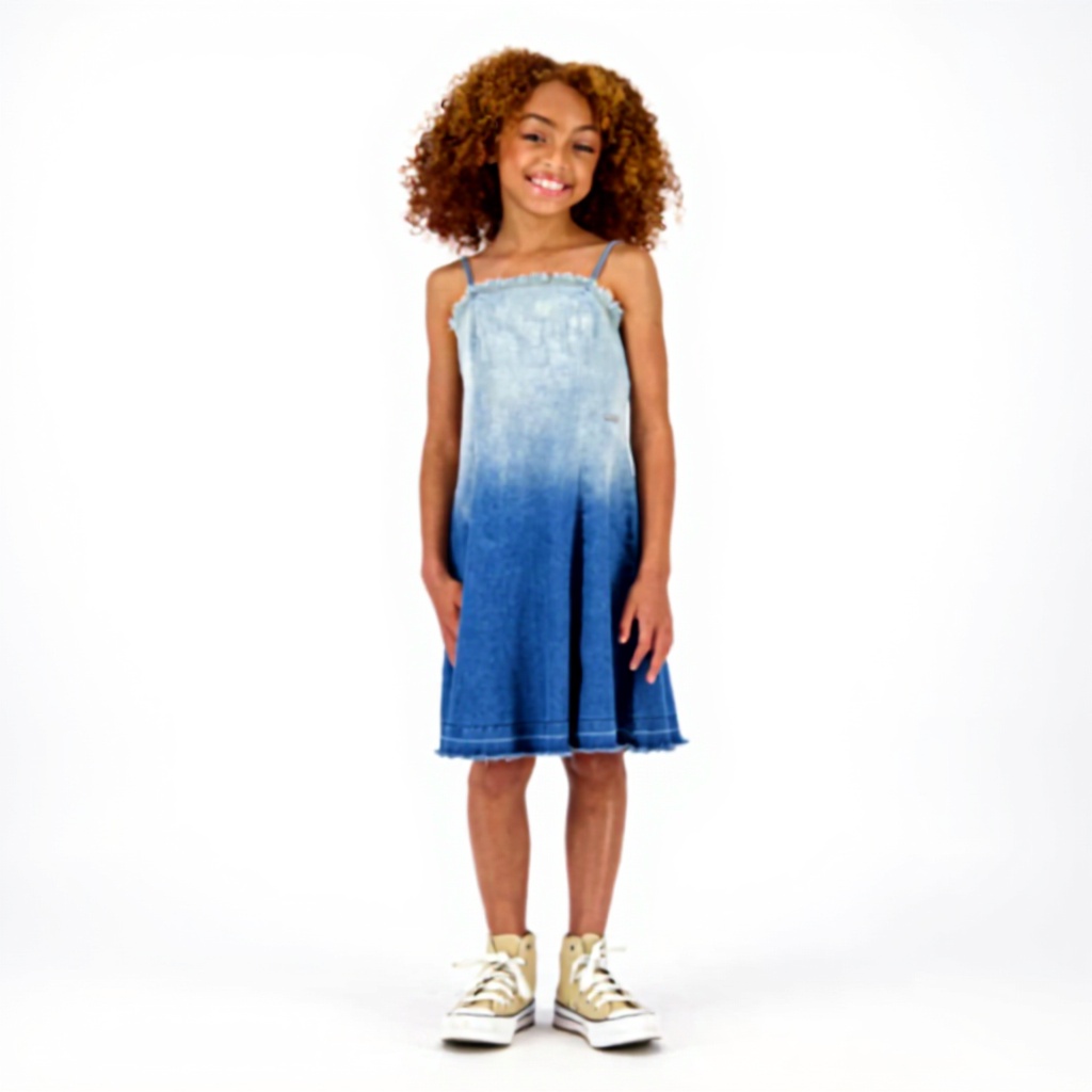 Das Kleid ist in den Größen von 2 bis 18 Jahren erhältlich, mit einer einheitlichen Farbe Mid Blue Wash. Es wiegt leicht und besteht aus atmungsaktiven Materialien, die für langanhaltenden Tragekomfort sorgen.