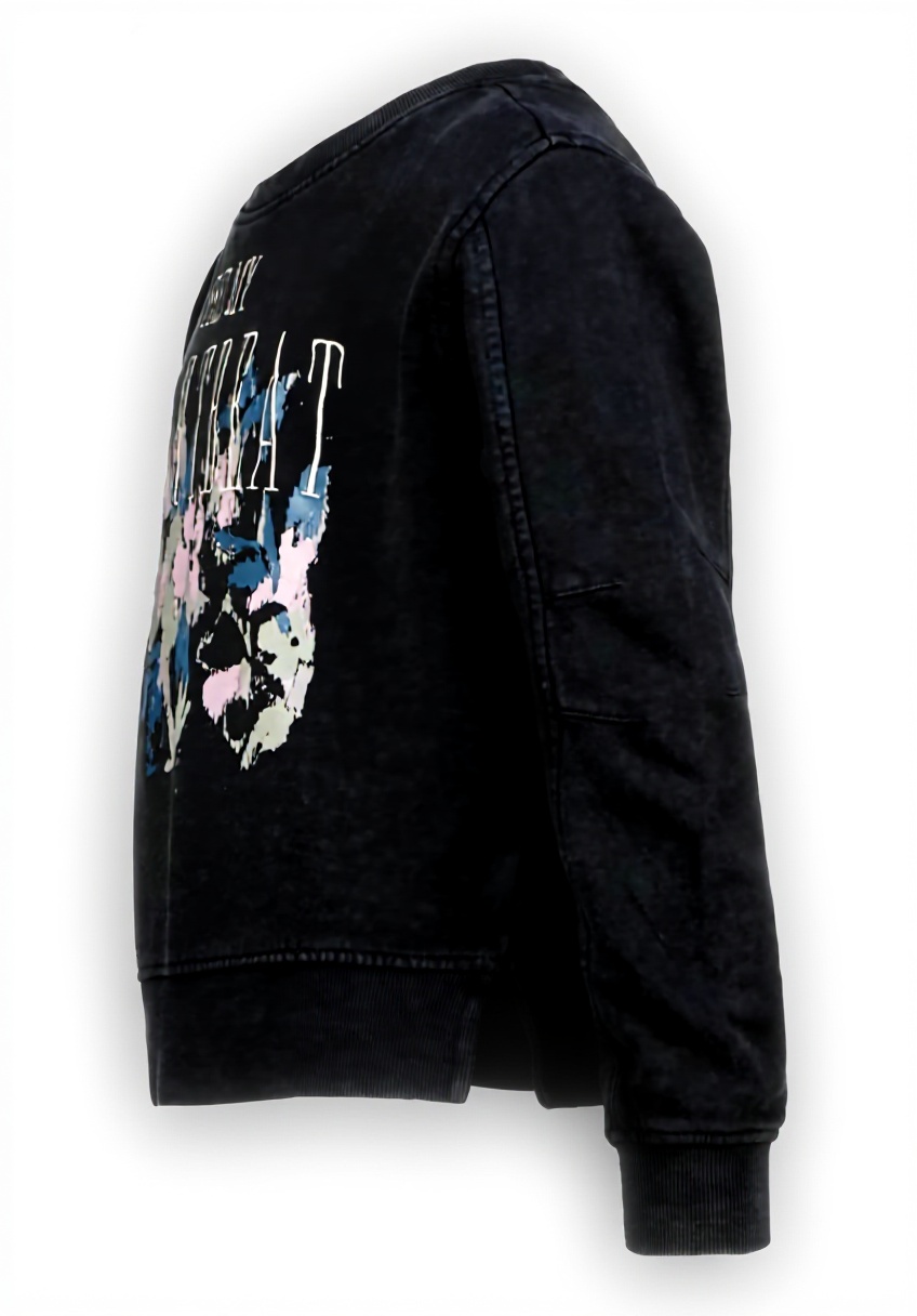 Erhältlich in den Größen 8, 10, 12 und 14 Jahre, mit einer einheitlichen Passform. Das Sweat-Shirt besteht aus Baumwollmischgewebe, ist leicht und pflegeleicht, mit der Modellnummer Nalita-washedblack für einfache Identifikation.
