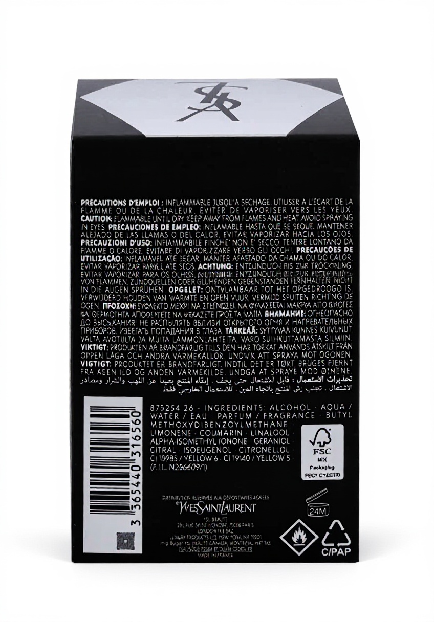 Das Produkt ist in einer 100 ml Flasche erhältlich, mit Abmessungen von 10 x 6 x 5 cm und einem Gewicht von 93,55 Gramm. Es handelt sich um ein Eau de Toilette Spray, das in Varianten wie Holz und Zitrusschale angeboten wird, wobei die Modellnummer YSL90005 lautet und es nicht als Auslaufartikel eingestuft ist.